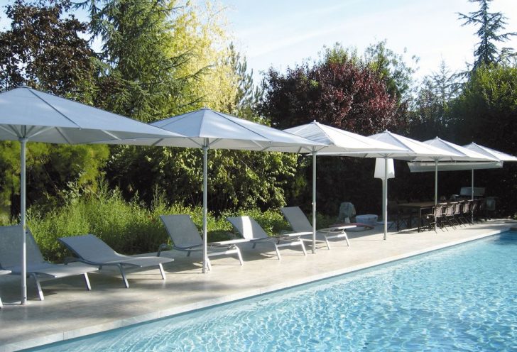 Parasoller med mittstolpe i aluminium ger låg vikt i förhållande till styrka. De tål tuff användning, daglig manövrering och miljöer nära hav, trafik eller pool. När stativet dessutom är skruvat i stället för nitat kan delar bytas ut vid behov, i stället för att hela parasollen kasseras.